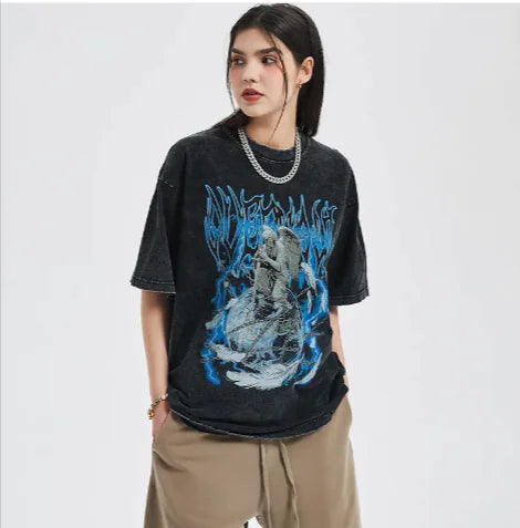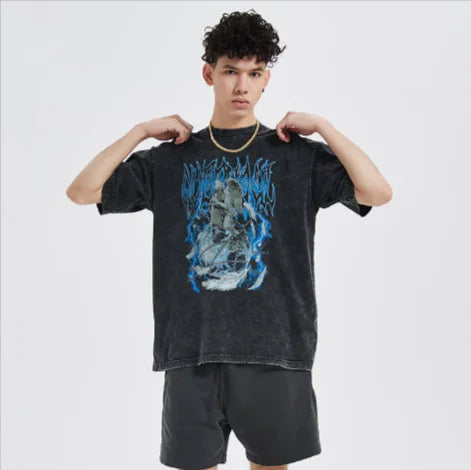 This vintage distressed cartoon t-shirt brings a fun retro vibe to your casual look. Crafted from soft cotton with a relaxed fit, it’s perfect for everyday wear, pairing effortlessly with jeans or shorts.