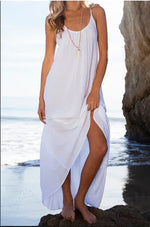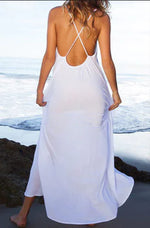 With its elegant backless design and flowing silhouette, this dress highlights your figure while providing the ultimate in comfort. Available in a classic White color, it effortlessly complements any beach accessory, allowing you to create a chic and effortless look.