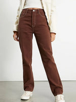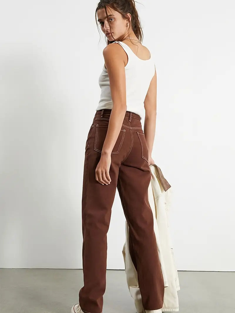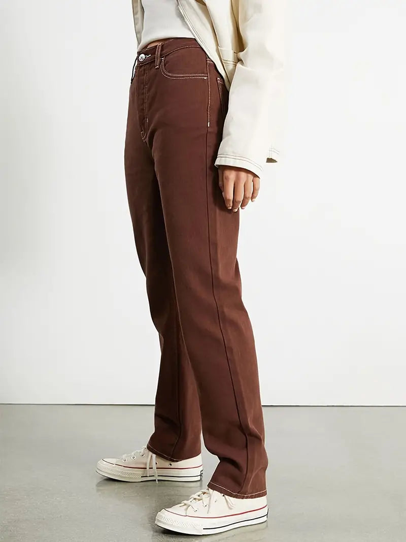 Brown High Waist Straight Leg Denim Jeans for Women