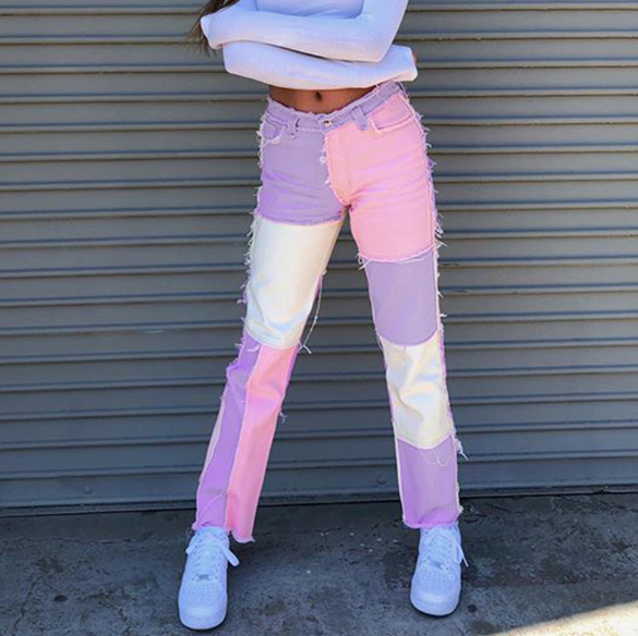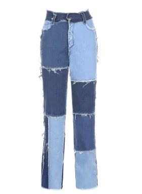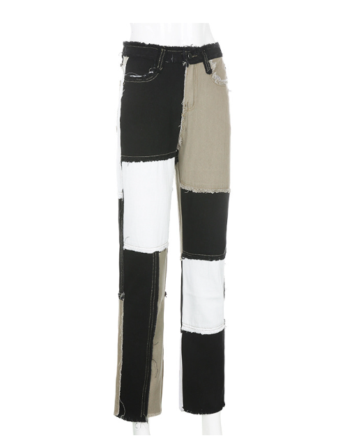Upgrade your denim game with our Casual Mixed Color Stitching Straight Wide Leg Jeans and experience the perfect combination of style and comfort. Order yours today!