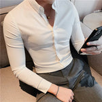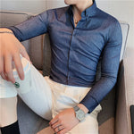 Elevate your wardrobe with our Dark Stripes Slim-fit Business Bottoming Shirt, meticulously designed for the modern professional. This Korean-style cardigan features a sleek, slim fit that hugs your body in all the right places while providing maximum comfort with its long sleeves and pointed collar.