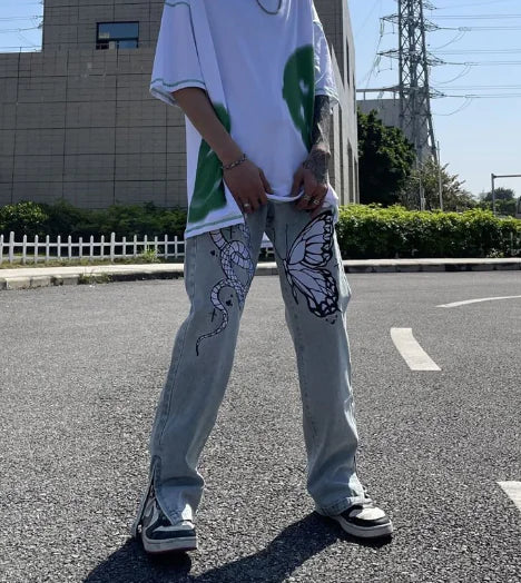 Embroidered Casual High Street Loose Fit Men’s Denim Jeans