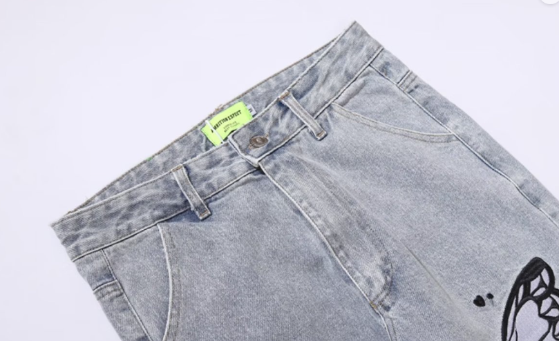 Crafted from high-quality cotton, they provide durability, breathability, and comfort that lasts. The intricate embroidery details and button embellishments add a touch of street-style flair, making them stand out from ordinary denim.
