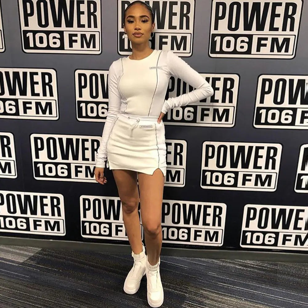 Design: Reflective Edge Long Sleeve Crop Top with Matching Skirt