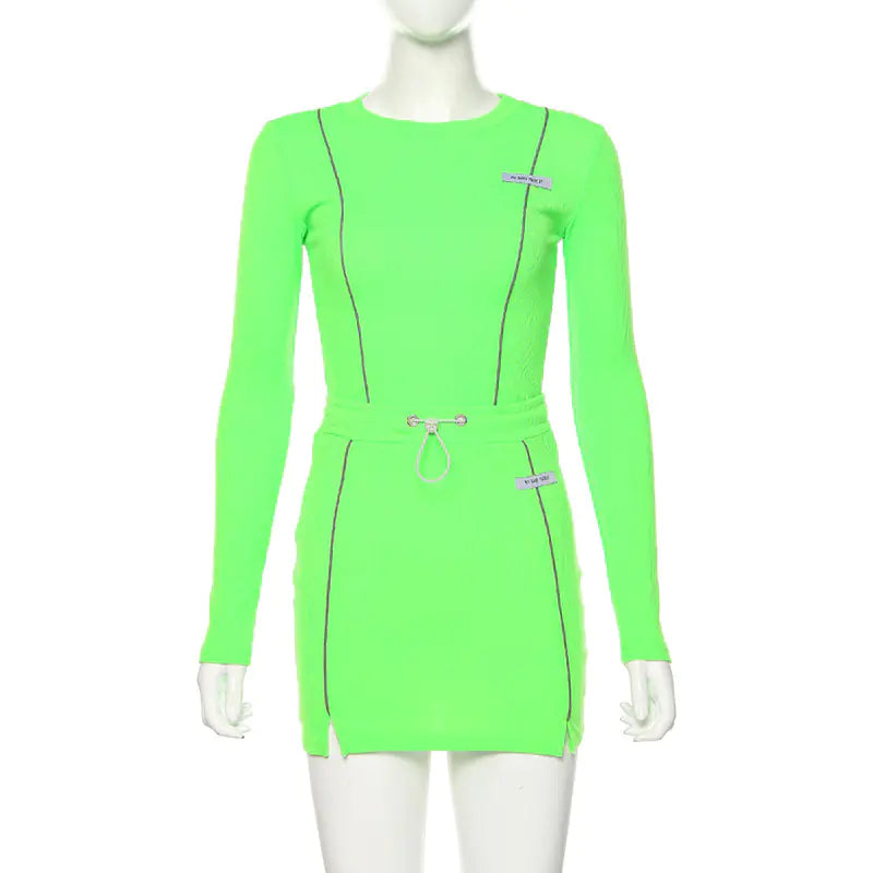 Reflective Trim Long Sleeve Two-Piece Dress Set